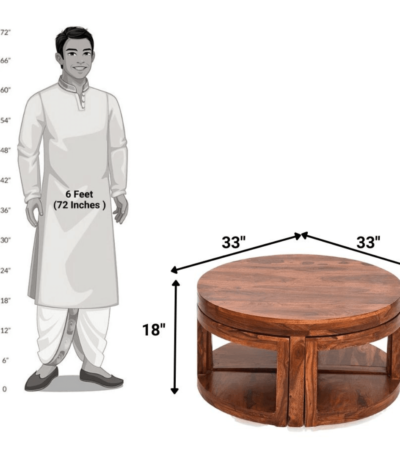 Tamra Solid Wood Sheesham Nested Coffee Table Set (1 Table + 4 Stools)