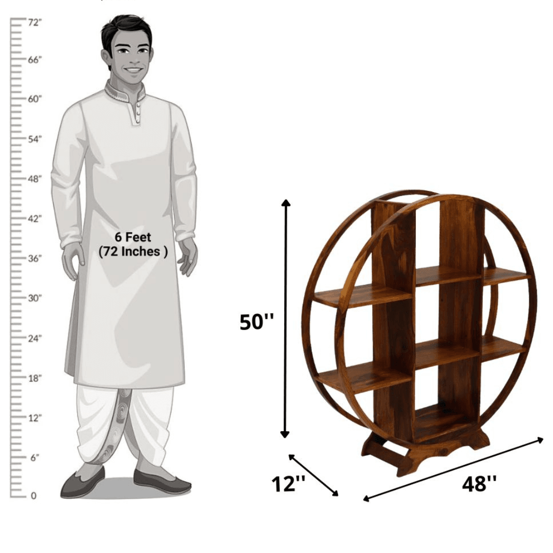 The Chakra Solid Wood Sheesham Bookshelf is a premium designer piece that combines style, durability, and functionality, making it an excellent addition to any room. This bookshelf is crafted from 100% authentic Sheesham wood, known for its timeless beauty, exceptional strength, and resistance to wear. Perfect for storing books, decor, or collectibles, it’s designed for open storage, offering easy access and a modern aesthetic.