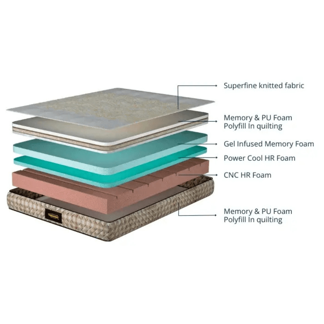 - Luxurious Feel: The deep-stitched quilted cover, made of high-GSM knitted fabric with memory foam and PU foam, adds a soft, elegant touch, enhancing the overall sleep experience.