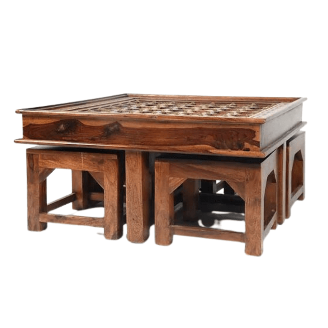 Tamra Solid Wood Sheesham Nested Coffee Table Set (1 Table + 4 Stools)